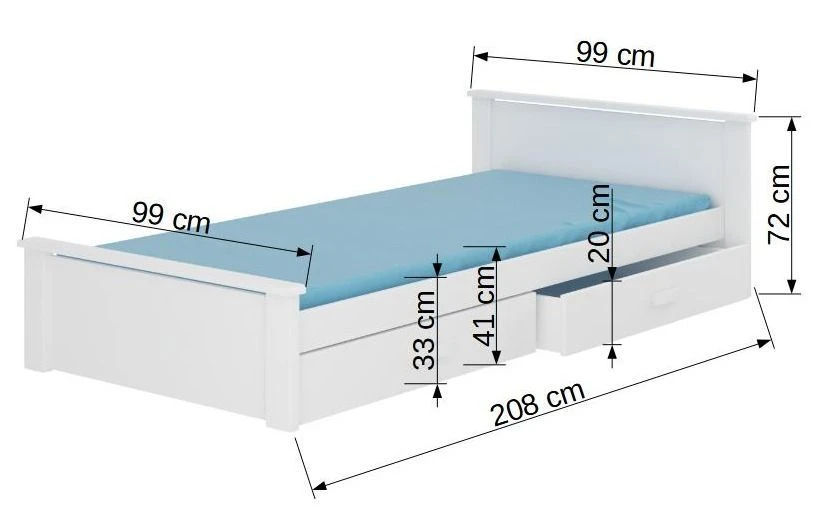 Le lit dispose de deux coffres de rangement pratiques de L 95 x P 80 x H 14 cm chacun.