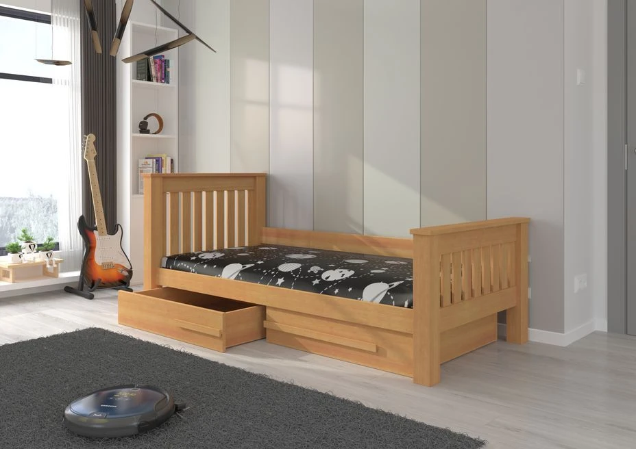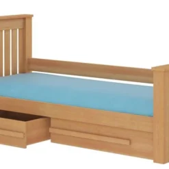 Le couchage de 90×200 cm offre un espace confortable pour un sommeil réparateur. Mais ce n’est pas tout ! L’avantage majeur de ce lit réside dans ses tiroirs spacieux et fonctionnels, parfaits pour ranger la literie et les couvertures en toute facilité. Plus besoin de chercher de l’espace de rangement supplémentaire, tout est organisé de manière ordonnée sous le lit !