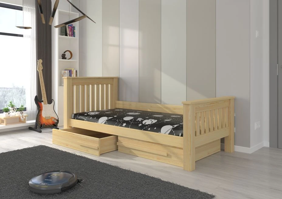 Le couchage de 90×200 cm offre un espace confortable pour un sommeil rĂ©parateur. Mais ce n’est pas tout ! L’avantage majeur de ce lit rĂ©side dans ses tiroirs spacieux et fonctionnels, parfaits pour ranger la literie et les couvertures en toute facilitĂ©. Plus besoin de chercher de l’espace de rangement supplĂ©mentaire, tout est organisĂ© de manière ordonnĂ©e sous le lit !