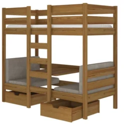 Offrez à votre enfant un espace de rêve avec notre lit superposé et mezzanine combiné bois clair oak et 2 fauteuils confortables avec un revêtement en velours gris foncé, conçu pour allier confort, fonctionnalité et sécurité. Le lit dispose d’un espace de couchage spacieux de 90×200, offrant à votre enfant une nuit de sommeil reposante. Les dimensions extérieures du lit sont de 208x97x170, parfaitement adaptées aux chambres de toutes tailles.