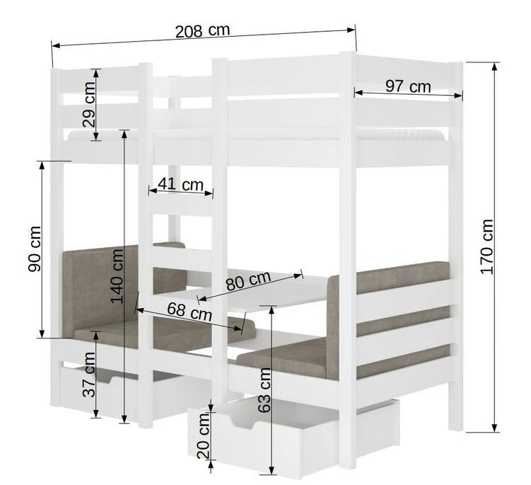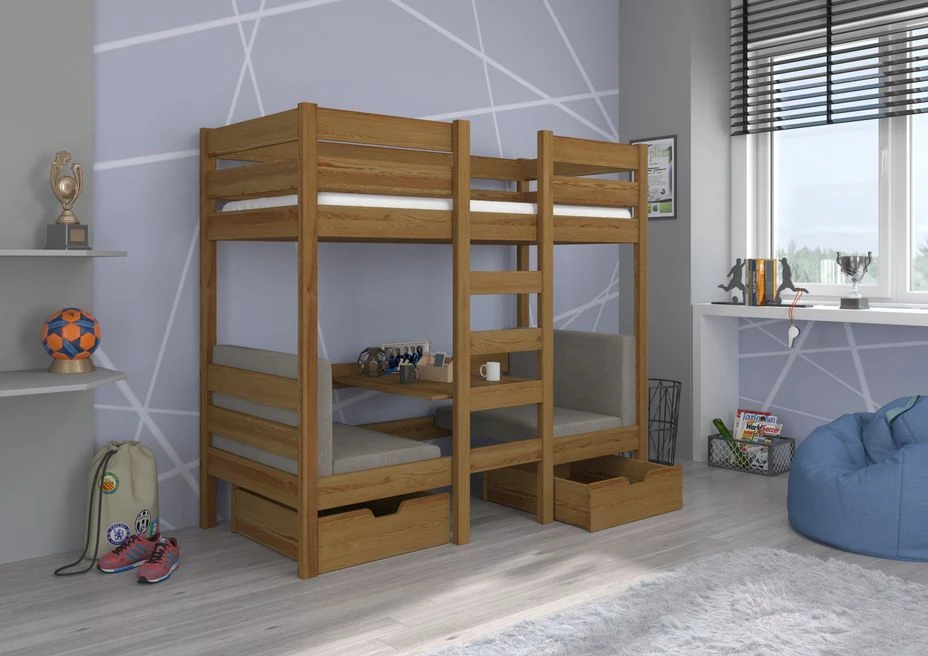 La polyvalence est l’un des atouts majeurs de notre lit enfant. En plus de l’espace de couchage confortable à l’étage, le lit dispose d’une fonction innovante au niveau inférieur. Le parties inférieure est divisé en quatre parties pratiques, offrant la possibilité de le transformer en une table et deux fauteuils séparés avec dossier. C’est l’endroit idéal pour que votre enfant puisse étudier, jouer ou se détendre en toute commodité.