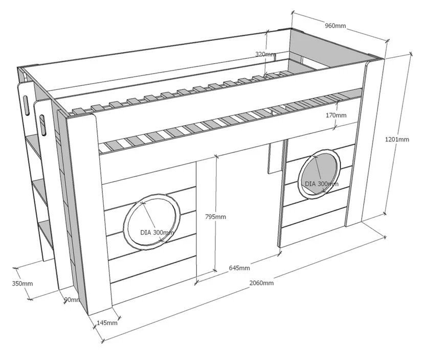 Dimension lit: L 96 x H 120 x P 213 cm