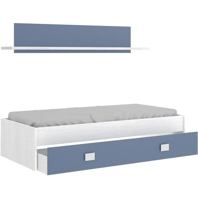 NOA Lit enfant – 1 Tiroir de rangement + 1 étagère – Structure en panneaux de particules mélaminés