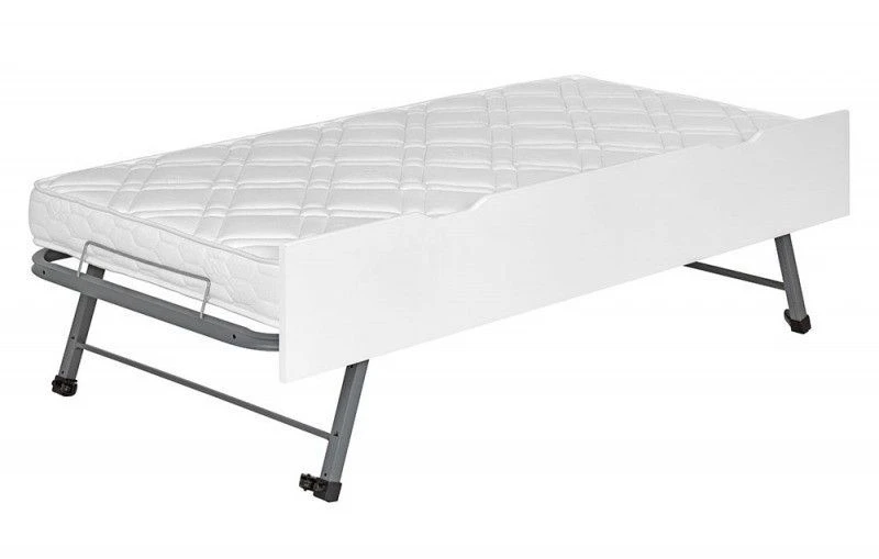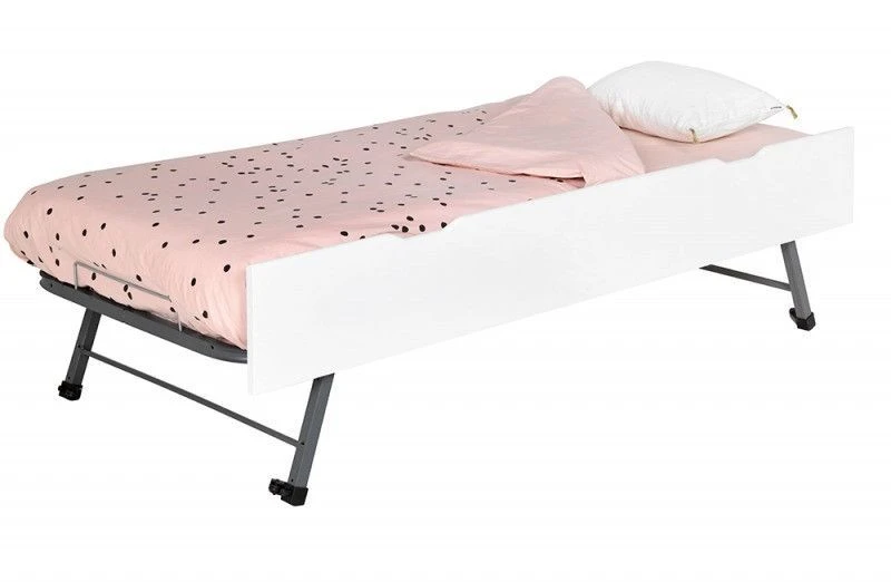 Il est fait en bois MDF, son sommier escamotable est composé d’une structure métallique robuste et facile à ranger sous le lit.